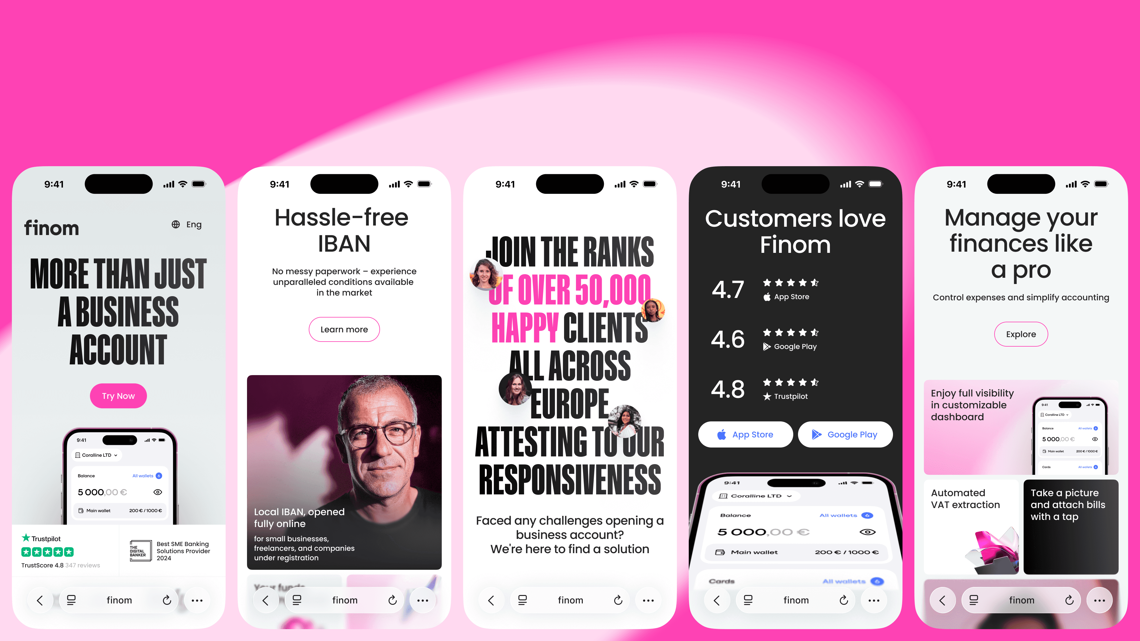 A European digital bank built for entrepreneurs and SMEs. I developed the core concept for the current website and app, defining the creative framework and overall product vision. The visual and structural system I created became the foundation that the Finom team later scaled and evolved internally, turning the concept into a fully realized digital experience.